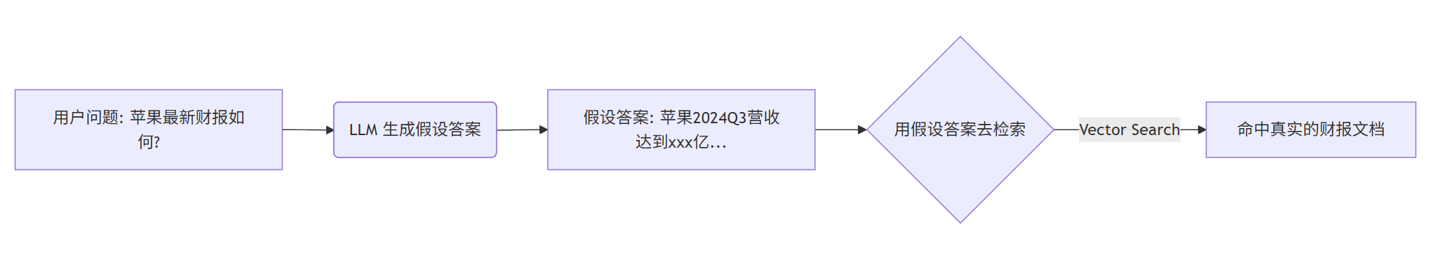- 解决痛点:Query 很短或很抽象,与文档在向量空间中语义距离太远。